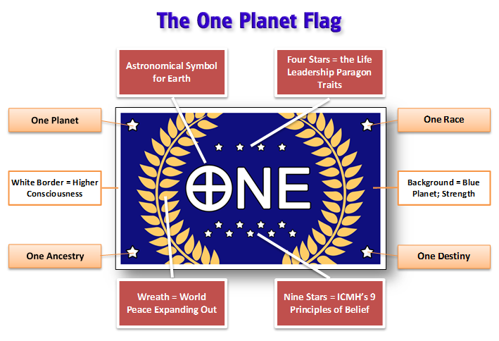 The maxim, One Planet, One Race, One Ancestry, One Destiny is signified on the One Planet Flag by four stars, one in each corner, covering the “four corners of the globe,” as it were.